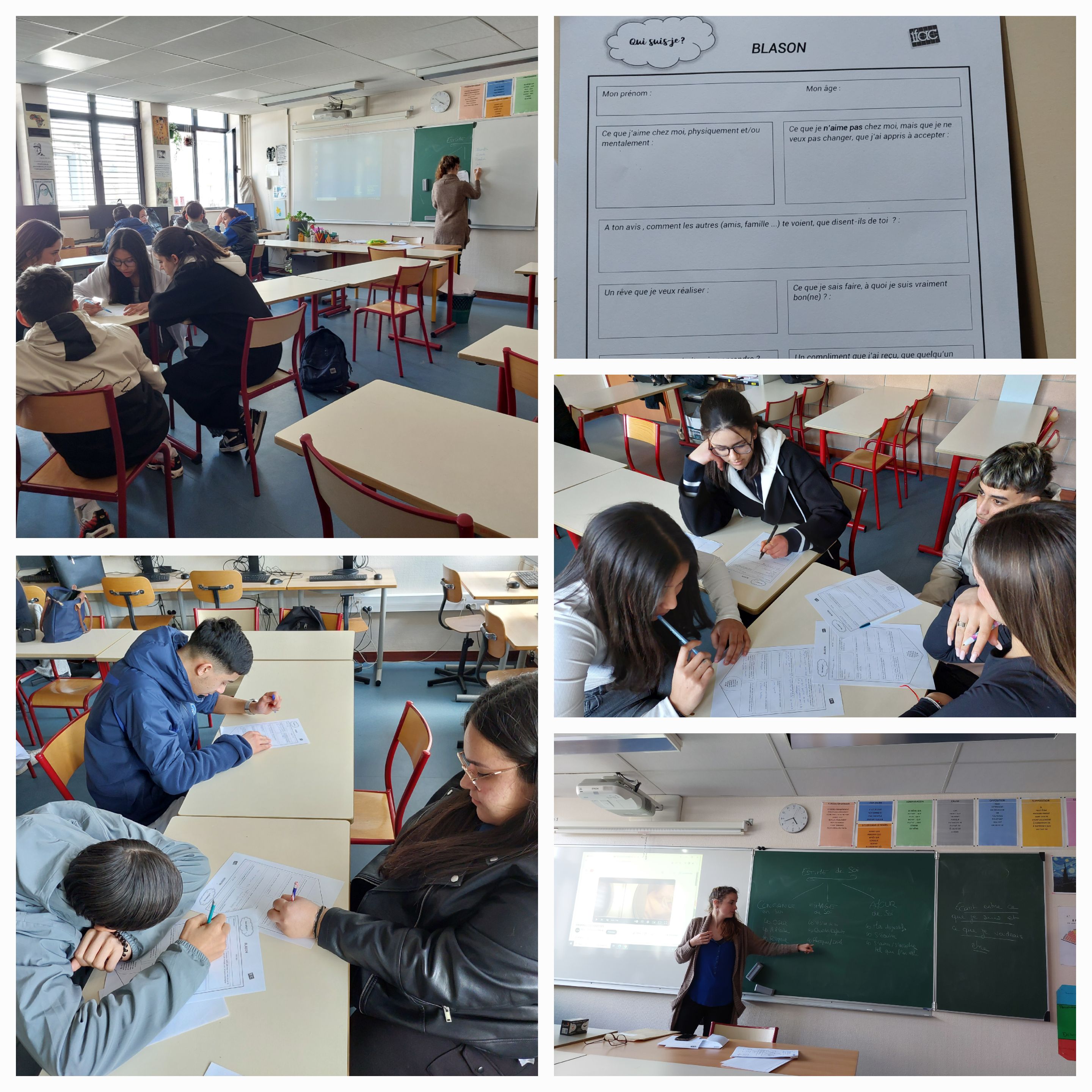 L'intervenante Estelle Guillot a proposé différentes activités comme le jeu de la Nasa, des vidéos et le Totem des animaux. Tout cela pour assimiler la notion d'amour propre, d'empathie et du respect mutuelle. Les élèves se sont vraiment investis et ont trouvé l'animation très ludique.