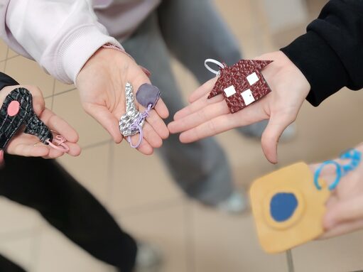 Chaque élève a conçu un porte-clés personnalisé, directement inspiré du métier qu’il ou elle souhaite explorer l’an prochain. Création du dessin artistique, puis dessin technique, patron, découpe, assemblage par collage, teinture : ils ont expérimenté les gestes fondamentaux et découvert les exigences de précision propres à la maroquinerie.
