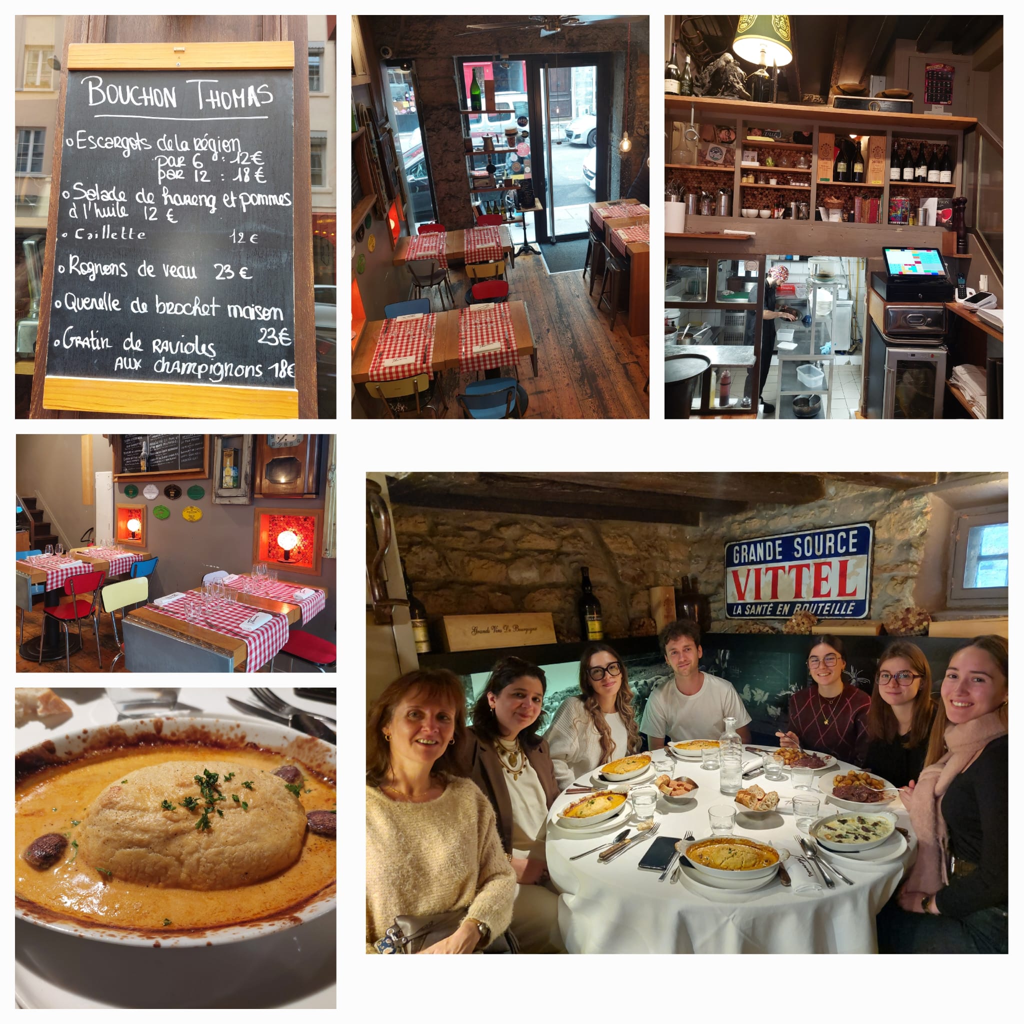 Pour poursuivre notre réflexion sur l’alimentation et l’intérêt pour les plats végan, nous sommes ensuite allés déjeuner dans l’un des plus anciens bouchons lyonnais : le Bouchon Thomas, ouvert en 1960.